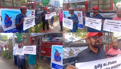 செம்மணி புதைகுழி விவகாரத்துக்கு துரித நீதி வேண்டும் என வலியுறுத்தி யாழ். மத்திய பேருந்து நிலையத்தில் வெள்ளிக்கிழமை 18ம் திகதியன்று அடையாள போராட்டம் ஒன்று குறித்த கட்சியால் முன்னெடுக்கப்பட்டது.