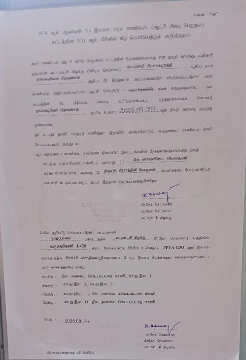 குறித்த காணியில் இருப்பவர் எந்தவித அனுமதியும் இன்றி சட்டவிரோதமாக அரச காணியை சுவீகரித்திருப்பதால் உடன் சம்மந்தப்பட்டவர்களை வெளியேற்றுமாறு பல முறை மருதங்கேணி கிராம அலுவலரால் வடமராட்சி கிழக்கு பிரதேச செயலருக்கு தெரியப்படுத்தப்பட்டது